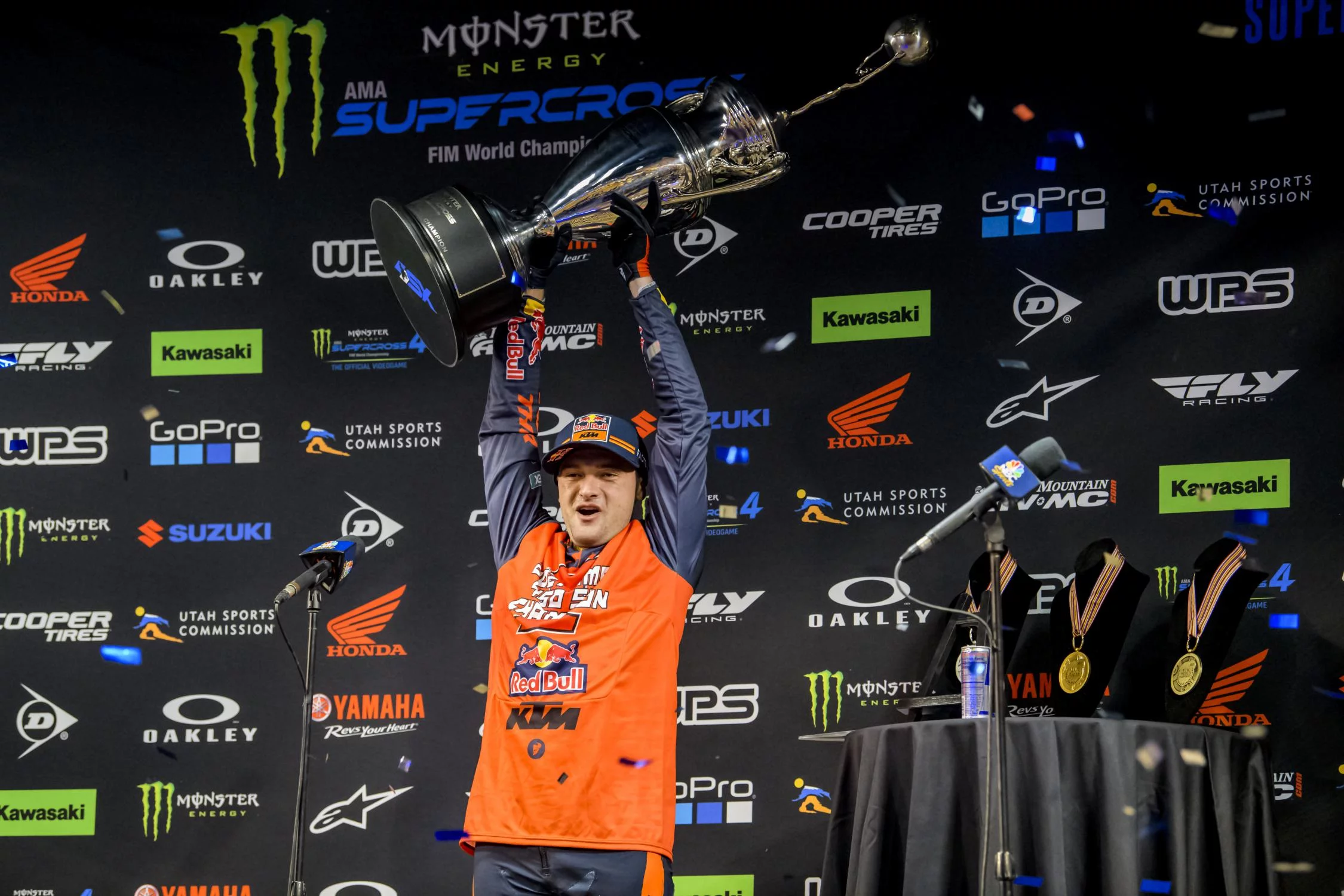 Cooper Webb (KTM) confirmed his status as off-road racing’s new superstar, lifting the AMA Supercross FIM World Championship after a sensational 2019 season. Webb, who won his first amateur national championship at the age of six and was the AMA Youth Motocross Rider of the Year in 2010 before turning professional three years later, stepped up to the 450SX class in 2017, earning his first podium during an injury-hit rookie season.